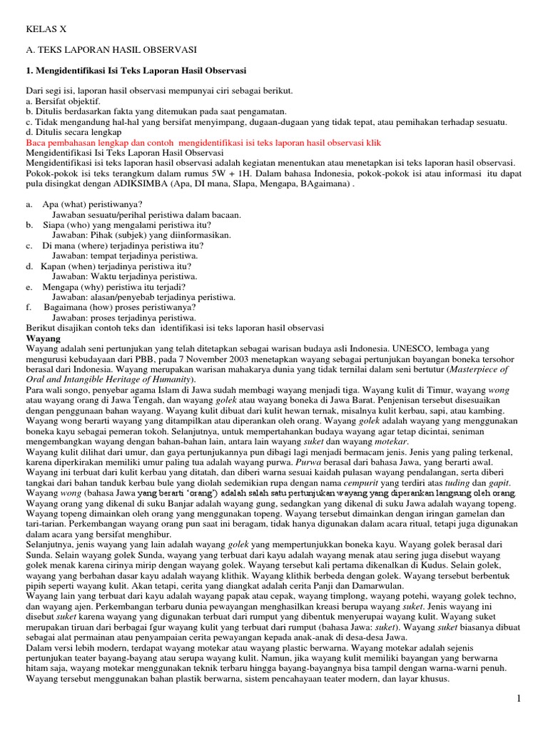 Bahasa Indonesia Kelas X Semester 1 Cetak Pdf Pdf from imgv2-2-f.scribdassets.com Jika diperhatikan, seluruh penjelasan di atas tidak jauh berbeda dengan teks yang lainnya. Wayang adalah seni pertunjukan yang telah ditetapkan sebagai warisan budaya asli indonesia. Hal ini menegaskan bahwa yang diungkapkan dalam laporan hasil observasi adalah sesuatu yang. Ada berapa jenis wayang berdasarkan bahan pembuatannya? Gaya informasi yang disajikan bersifat mengajak para pembaca. Karenanya laporan hasil observasi disebut sebagai dokumentasi. Demikianlah pembahasan yang dapat kami sampaikan mengenai informasi apa saja yang disampaikan dalam teks tersebut. 1.informasi apa yg disampaikan dalam teks wayang?